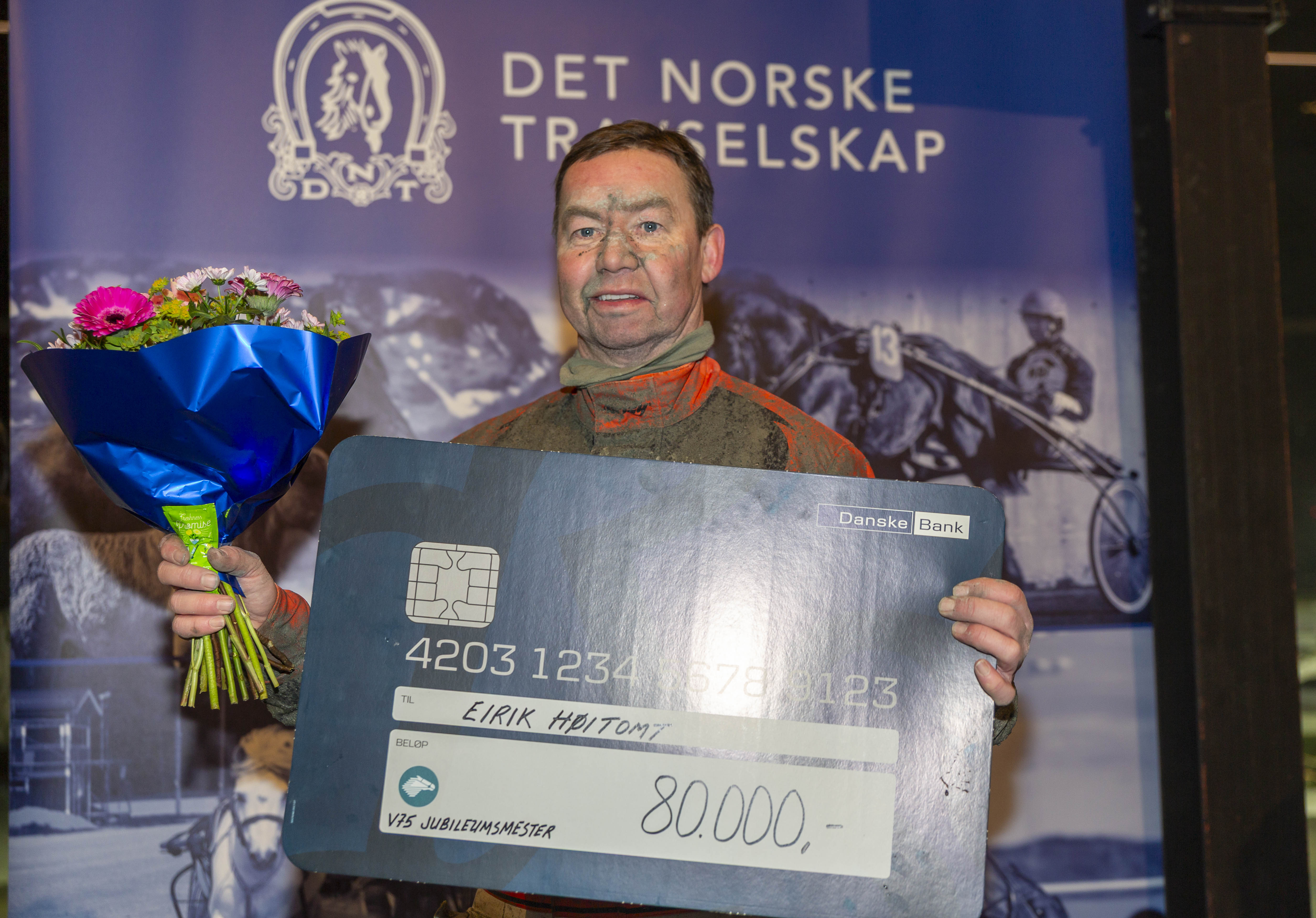 Premiene ble delt ut under V75-kjøringen på Bjerke lørdag kveld. Eirik Høitomt - som vant 37 V75-løp i 2025 - fikk en sjekk på 80 000 kroner. Tom Erik Solberg (31 seirer) på annenplass fikk 50 000, mens Åsbjørn Tengsareid (28 seirer) fikk 20 000.