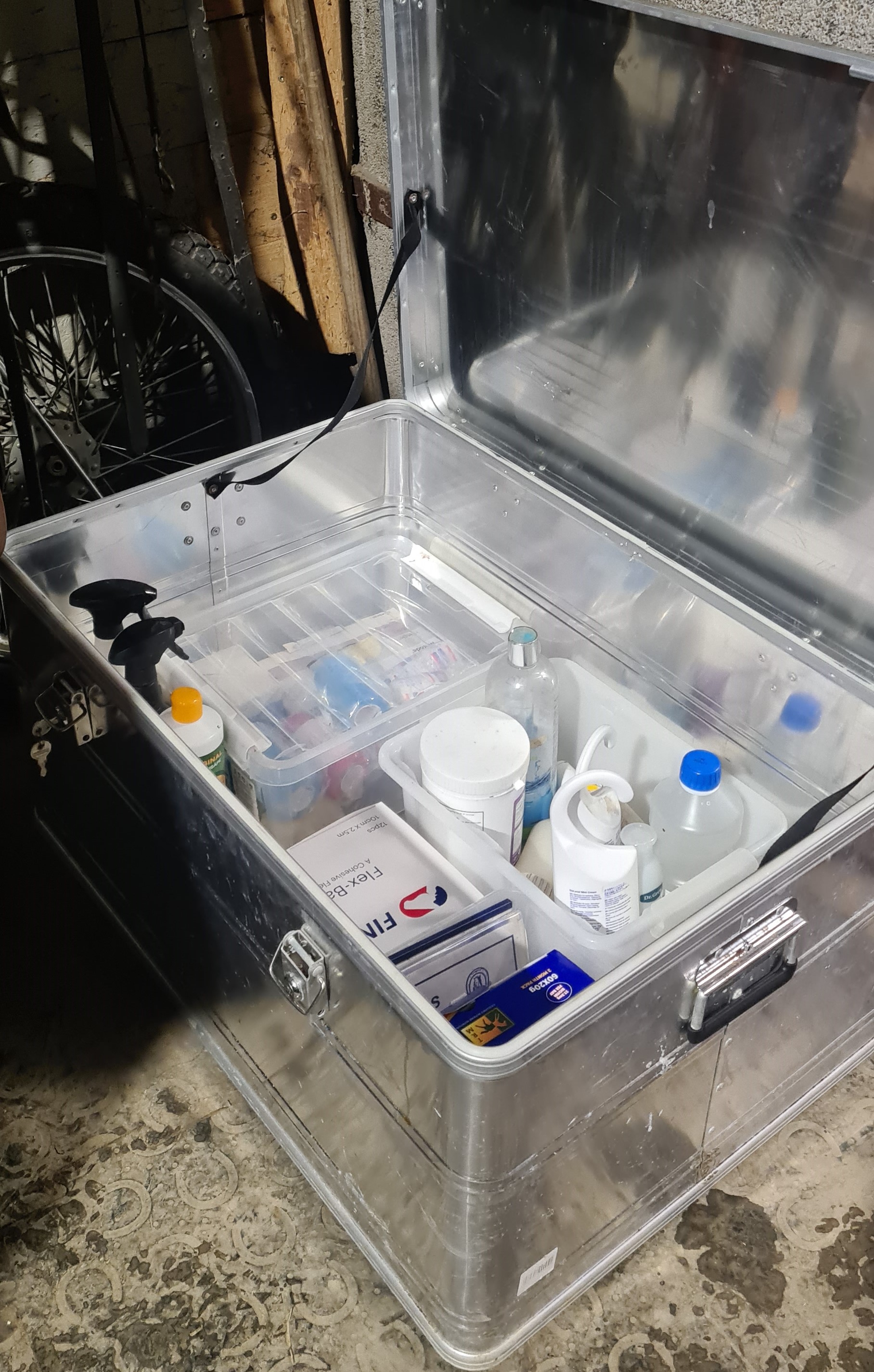 I stallen skal det være et medisinskap/boks, eller et eget rom for oppbevaring av reseptpliktige medikamenter. Dette medisinskapet/rommet skal være låst og nøkkelen skal oppbevares slik at det bare er det nødvendige antall personer på stallen som har tilgang til skapet.